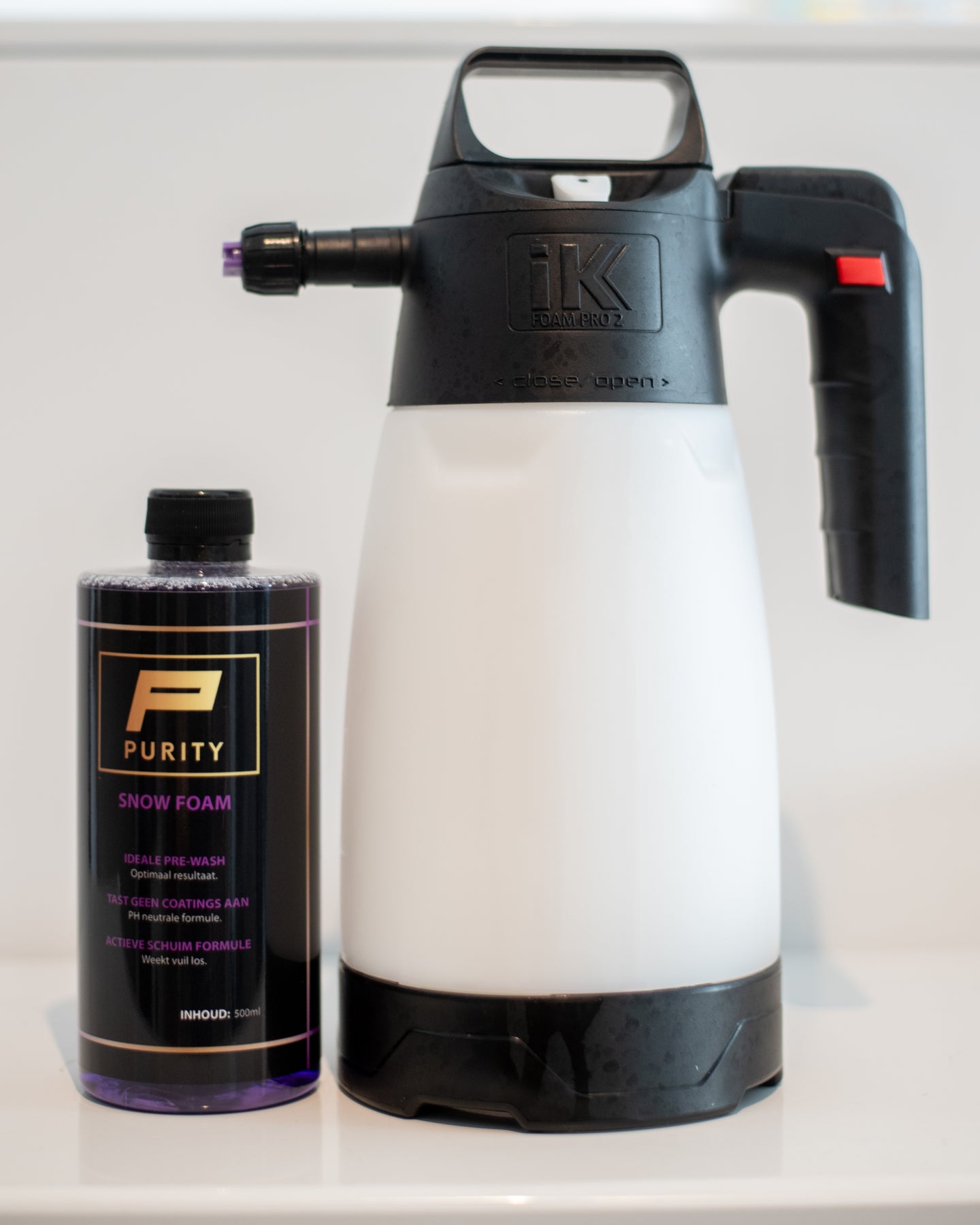 Het doel is om contactloos zoveel mogelijk vuil te verwijderen , Met een handfoamer breng je snowfoam aan waardoor al het aanwezige vuil contactloos verwijderd kan worden.